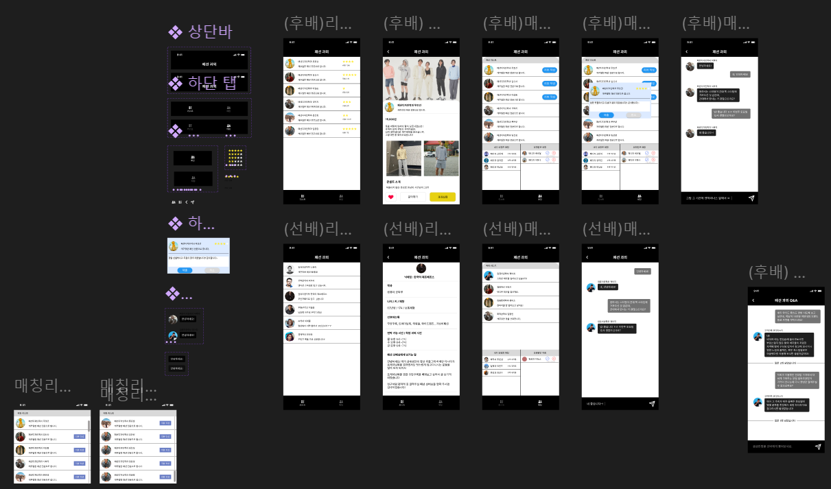 최종적으로 저희팀은 교내 패션과외 서비스를 콘셉트로 하여 한학기 프로젝트를 진행하였습니다. 교내 패션디자인학과가 있어서 그 학생들이 멘토가 되어서 옷을 잘 입고싶은 학생들을 대상으로 개인과외형태로 주변 옷가게들을 돌며 코디를 도와주는 서비스 입니다. (여담: 개인적으로 전반적인 수업의 퀄리티는 사실 전혀 만족스럽지 못했습니다.)